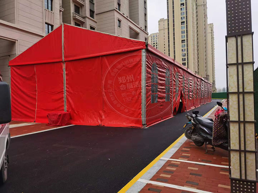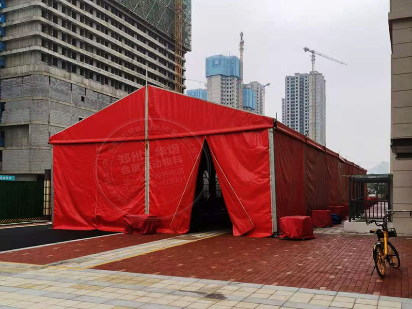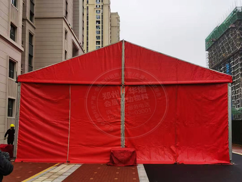 鄭州鑫苑新城開盤活動華熠為其提供紅色篷房租賃,除此之外華熠還有著眾多