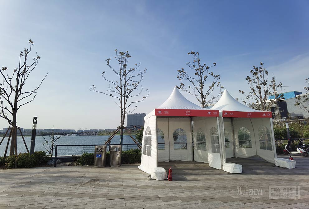 尖頂篷房的組裝及拆卸靈活、簡便、運輸方便。篷布可折疊,框架拆卸后體積小,便于運輸和儲存。同時,尖頂篷房對搭建場地無特殊需要,一般平地如草地、瀝青地、水泥地、大理石地面均可。這使得尖頂篷房在戶外活動中具有更高的靈活性和適用性。