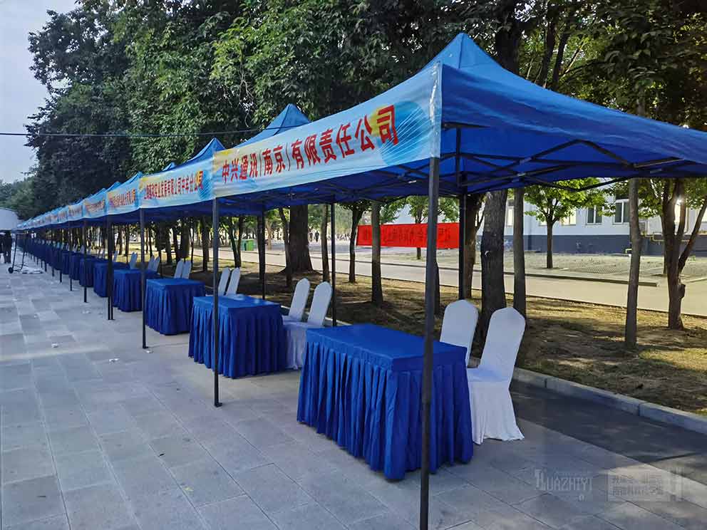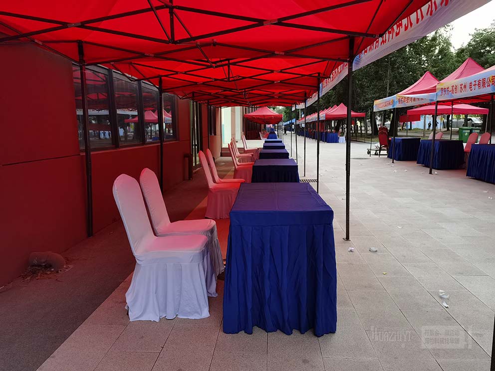 鄭州篷房出租廠家的專業團隊還為雙選會現場提供了全方位的服務支持。從篷房的搭建、布置到后期的拆除、清理,華熠都嚴格把控每一個細節,確保整個活動的順利進行。同時,華熠現場人員還為現場提供了專業的照明、音響等設備,讓雙選會現場的氣氛更加熱烈、溫馨。