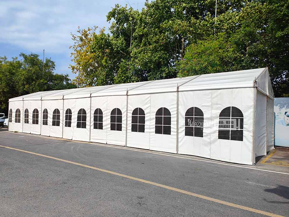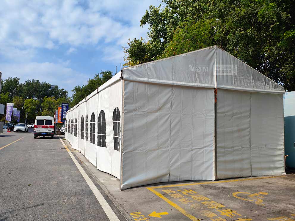 華熠篷房租賃公司憑借豐富的搭建經(jīng)驗(yàn)和專業(yè)的施工團(tuán)隊,在短時間內(nèi)完成了這座臨時展廳篷房的搭建工作。我們不僅注重篷房的穩(wěn)固性和安全性,更在細(xì)節(jié)處理上精益求精,確保每一個細(xì)節(jié)都能達(dá)到更佳效果。