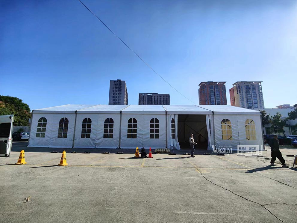 這座臨時(shí)展廳采用了雙層pvc的篷房材料,結(jié)構(gòu)穩(wěn)固,能夠抵御雨水天氣,確保車展的順利進(jìn)行。同時(shí),展廳的設(shè)計(jì)充滿了現(xiàn)代感和科技感,與廣汽豐田的品牌形象相得益彰。