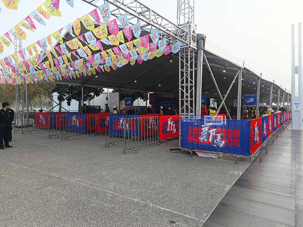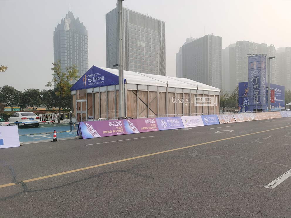 鄭州篷房租賃搭建2024鄭州馬拉松現(xiàn)場物資領(lǐng)取篷房。鄭州馬拉松已經(jīng)順利收官,我們再來回顧一下現(xiàn)場吧。此次活動鄭州華熠提供了不少種類的物料,其中較大的有一座玻璃篷房、一座領(lǐng)取物資的大型篷房等。這座大型領(lǐng)取物資篷房為了確保參賽選手和觀眾能夠順利領(lǐng)取物資,空間大,指示牌醒目。
