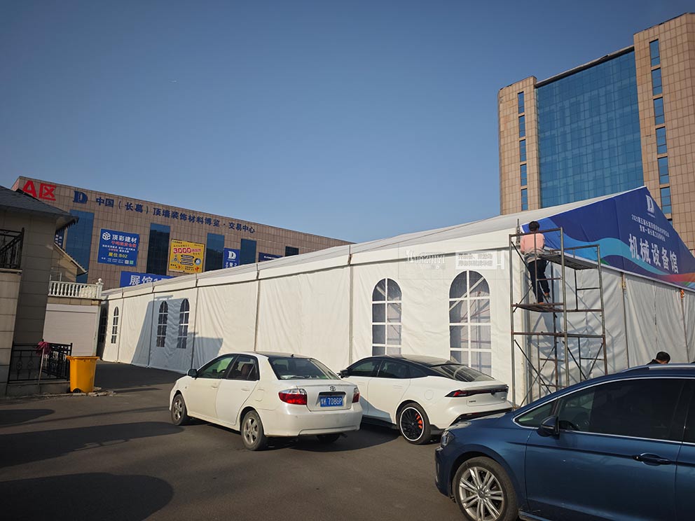 現場搭建過程中,工人們分工明確,配合默契。從基礎搭建到篷布鋪設,再到細節裝飾,每一個環節都經過嚴格把控。同時,公司還提供了完善的配套設施,如照明系統、空調設備等,以滿足參展商和觀眾的不同需求。