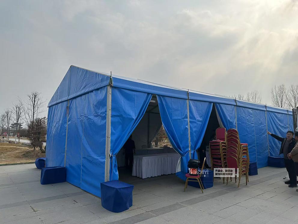 同時,華熠篷房租賃公司擁有豐富的篷房庫存。這些篷房采用高品質的雙層PVC篷布材料,具有抗風、防水等多重功能,確保活動在任何天氣條件下都能順利進行。同時,這些篷房還采用鋼架結構,具有良好的穩定性和承重能力,能夠確保活動的安全進行。