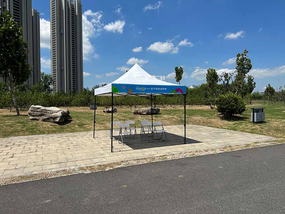 白色簡易帳篷的排布循著賽事動線精準落地。菏澤篷房出租選用的帳篷頂高 3 米,四組輕量化金屬支架撐起 4 米 ×3 米的遮陽區域,純白色篷布經過防曬處理,正午時分站在篷下,能明顯感受到暑氣消散。醫療點帳篷緊鄰賽道中段的障礙區,方便及時處理意外情況;補給點帳篷則設在兩個高難度障礙之間,讓完成挑戰的親子家庭能快速補充能量;水槍回收處帳篷靠近賽道終點,便于活動結束后回收道具。